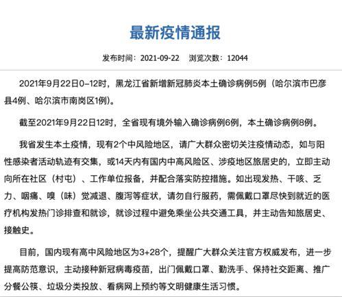 首先,咱们得了解一下这次新增病例的具体情况。根据哈尔滨市卫生健康委员会的官方通报,最近一周内,哈尔滨市新增确诊病例数呈上升趋势。尤其是某一天,新增病例数达到了XX例,创下了近期的最高纪录。这可真是让人心头一紧啊!